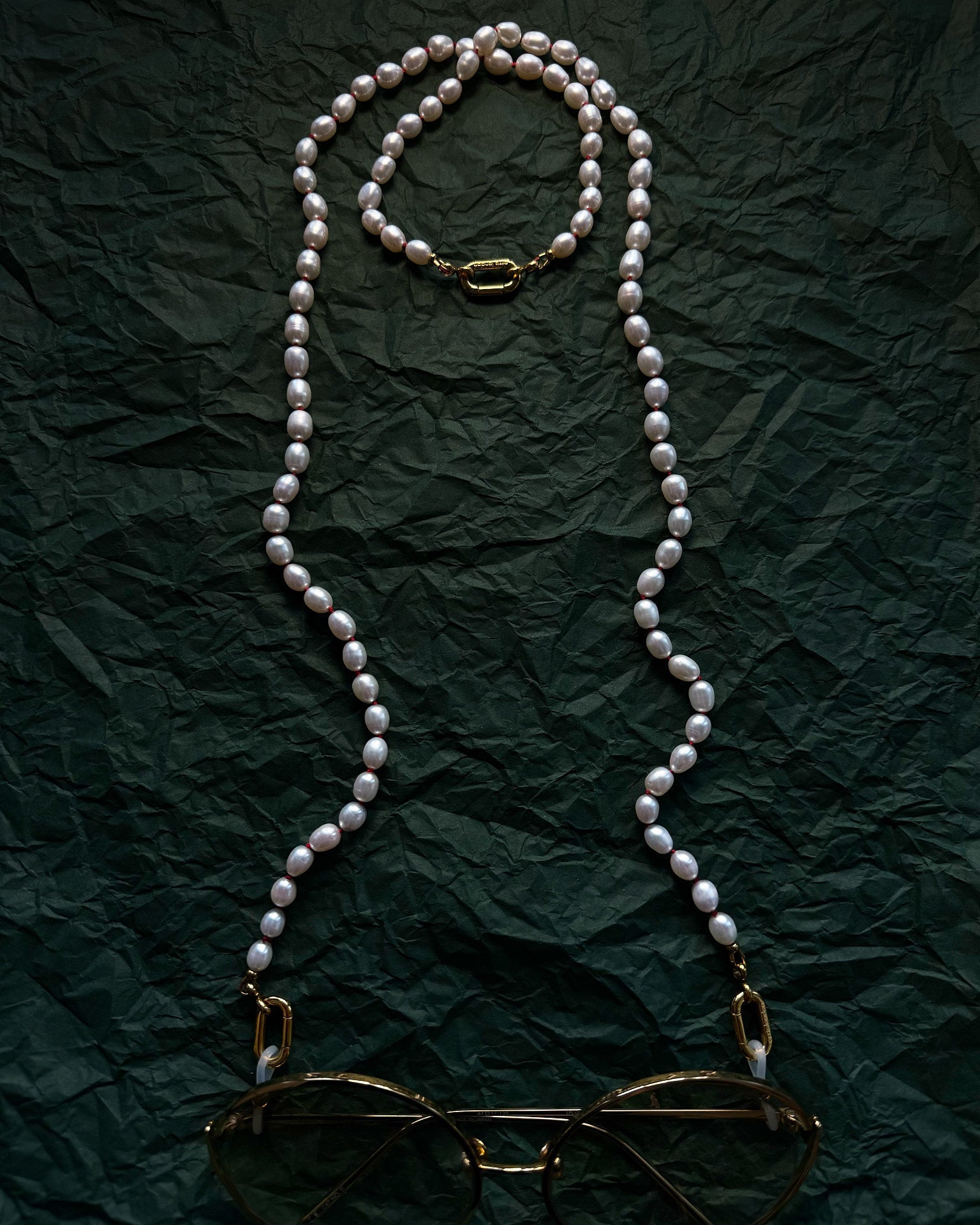 The O Necklace | Fresh Water Pearl & Lapis Lazuli | Glasses Holder