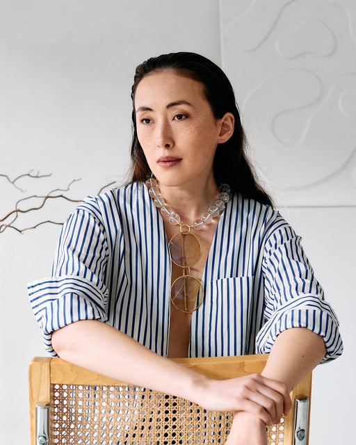 The O Necklace | Half-Half in Fresh Water Pearl & Indian Agate | Glasses Holder