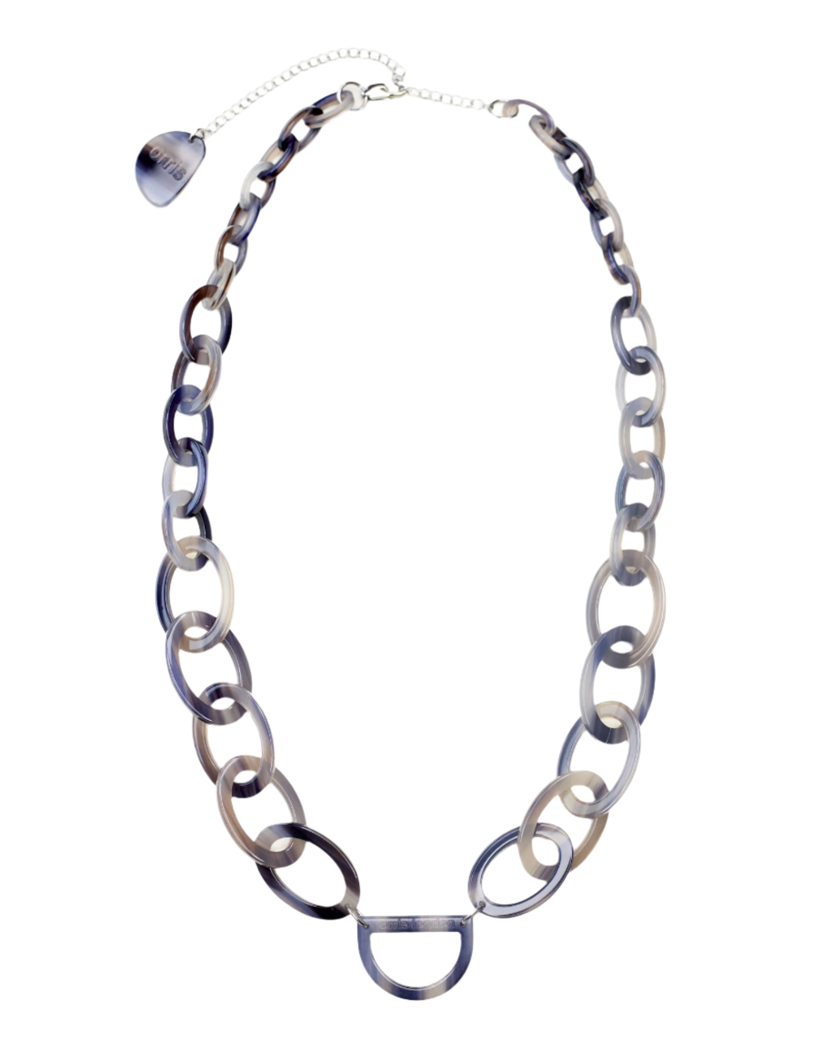 Original D Glasses Necklace is a stylish alternative to ordinary glasses chains and spectacle holders. It is composed of bold hoops made of Italian acetate, joining at the signature ‘D’ shape, creating a beautiful necklace that holds your glasses. You can wear it alone as a necklace, or hang your reading glasses, sunglasses or optical glasses on it.