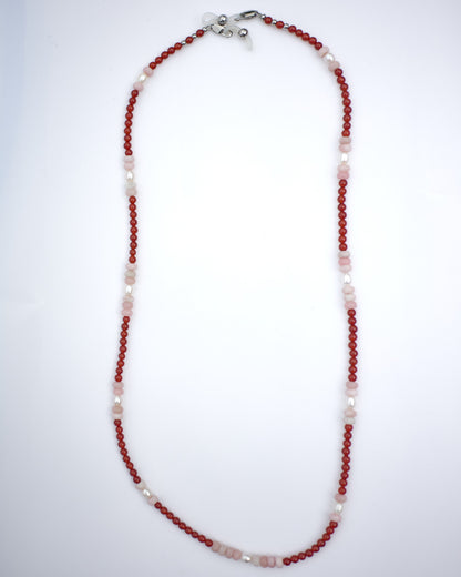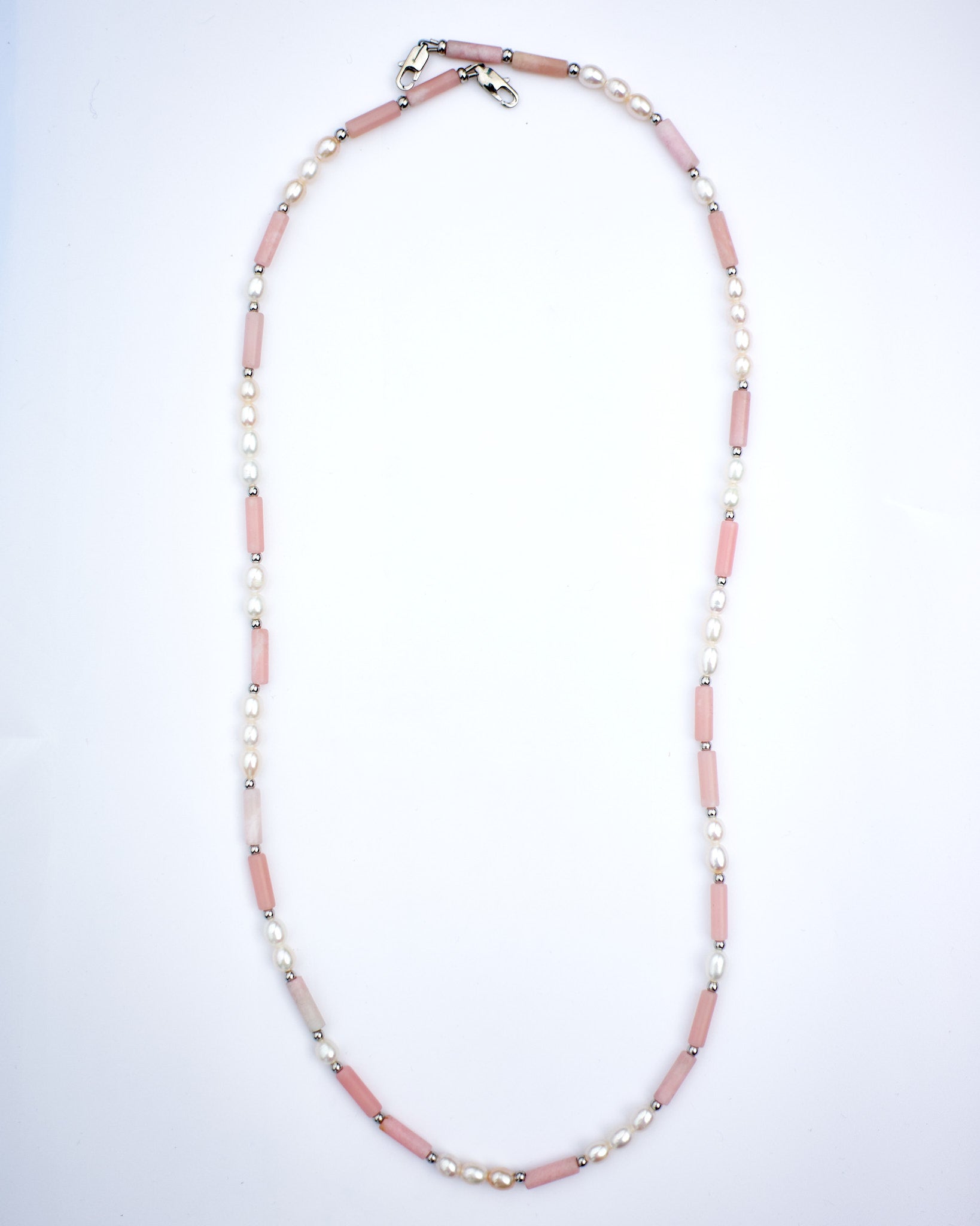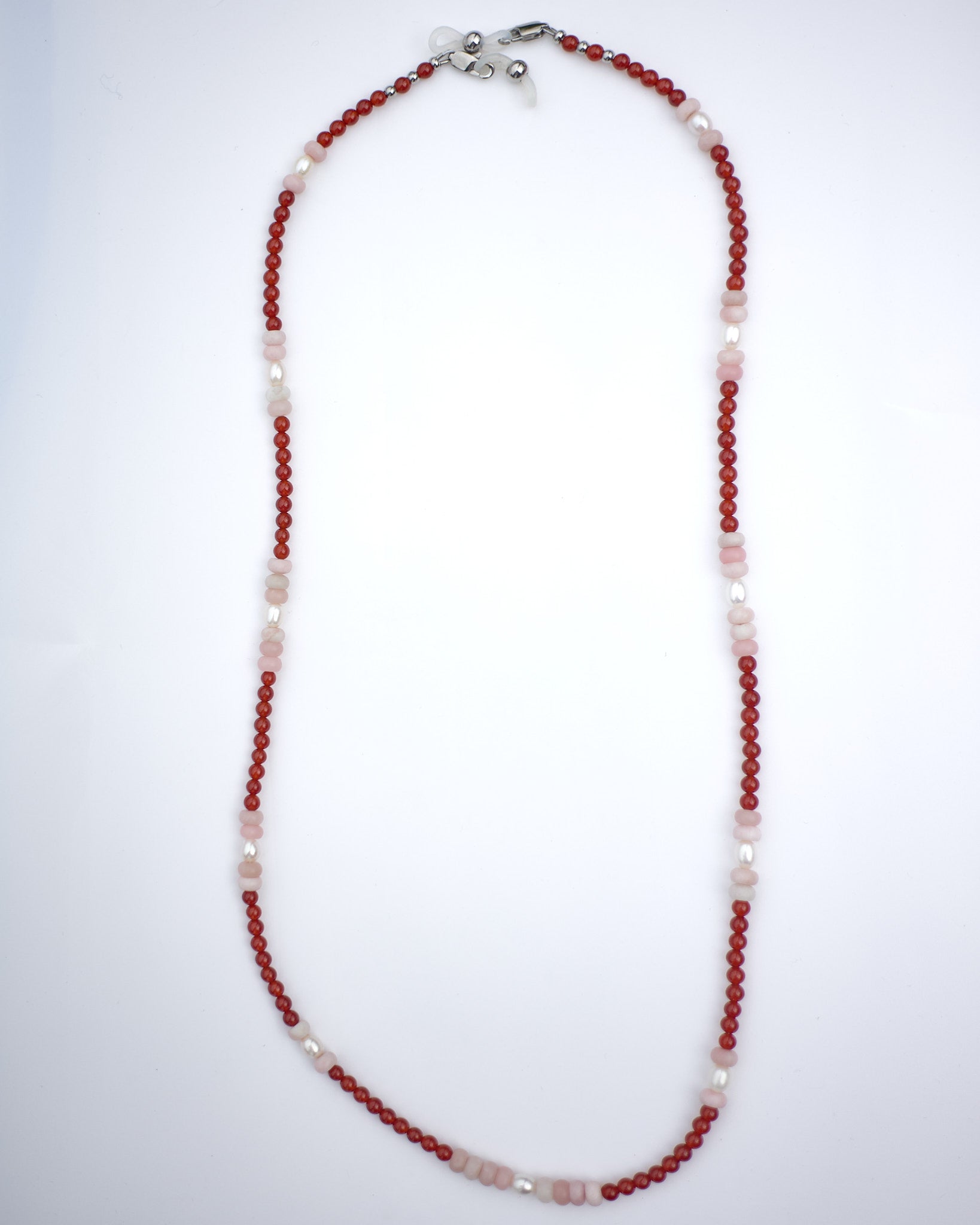 Elevate everyday function with soft summer tones — this style combines luminous freshwater pearls, blush-pink opal, and warm agate beads. Equal parts playful and refined, it keeps your glasses close while doubling as a delicate accessory.