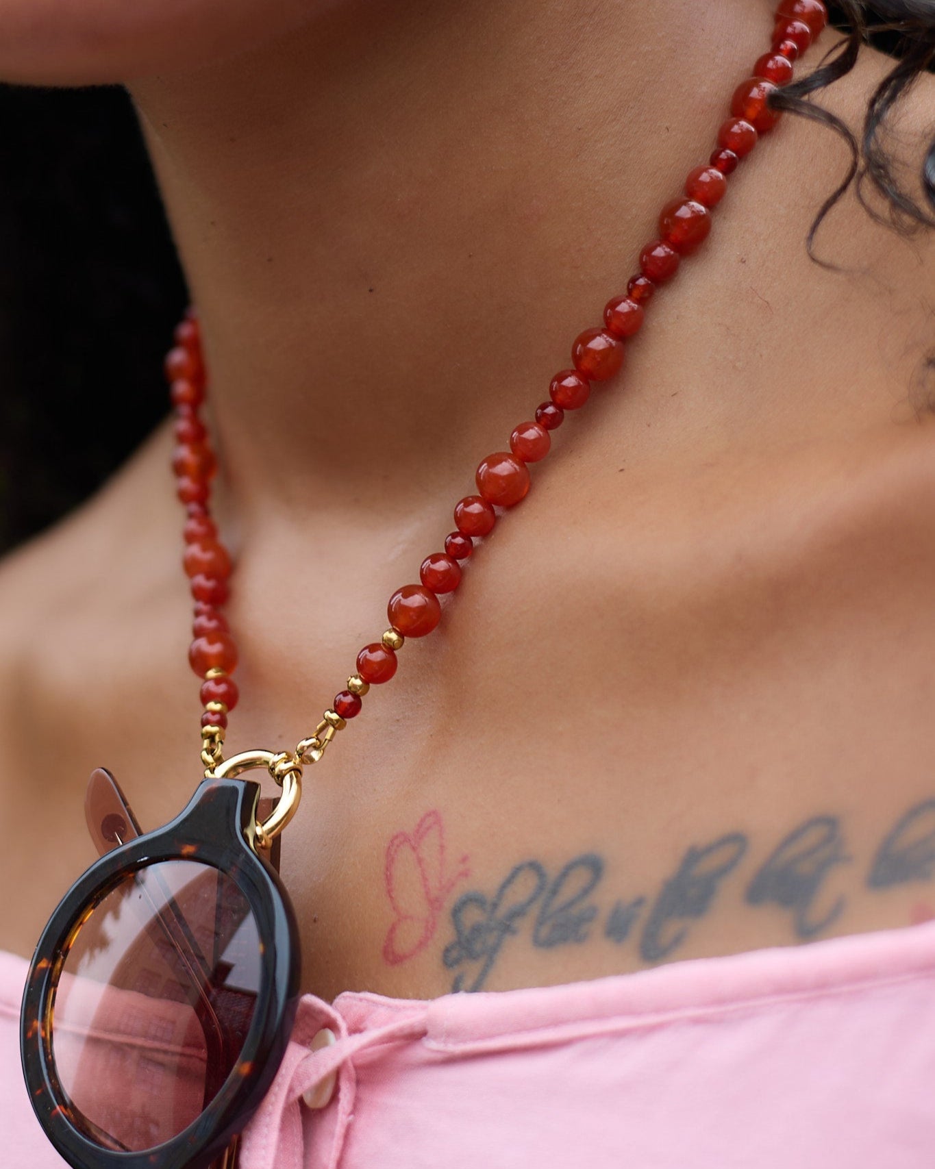 The O Necklace | Red Agate Ball Ball | Glasses Holder